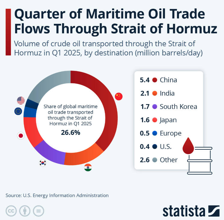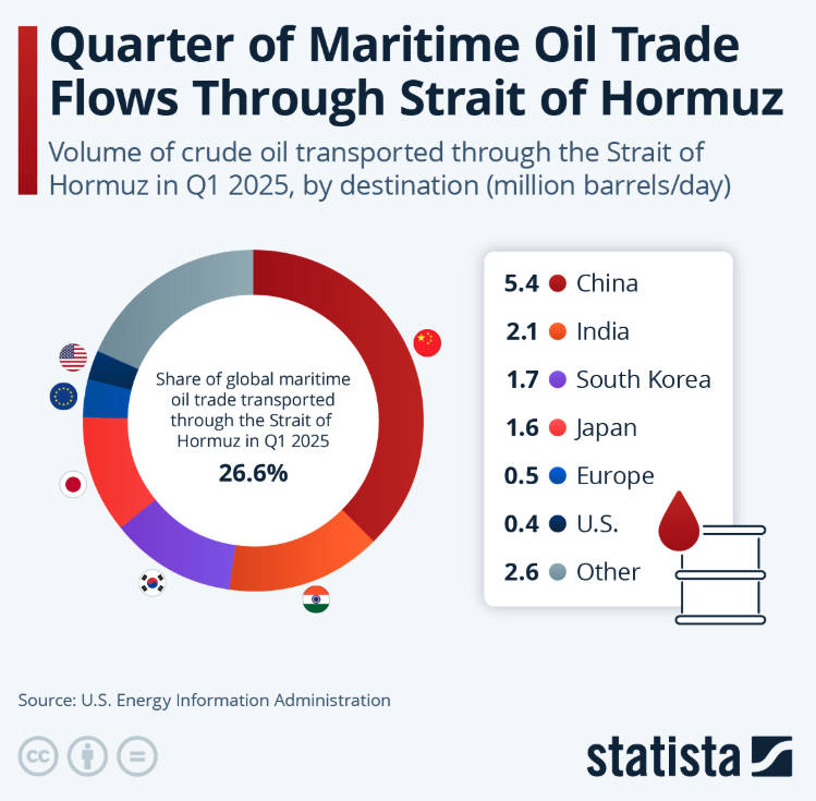Shocking new report shows that Trump started war with Iran because Jared Kushner told him to... because Jared was too stupid to understand what the Iranians were offering!About one-fifth of the world's oil travels through the Persian Gulf. China and India are its biggest consumers, but a sustained disruption ripples across every major economy.