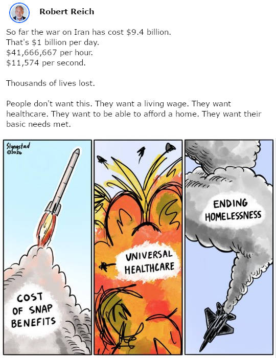 Iran war's energy price shock is likely to spiral economy-wide The Iran conflict has a new economic front: oil topping $100 a barrel, with a near-immediate impact for drivers, travelers and grocery shoppers - while the benefits will flow more slowly to a handful of oil patch states. Why it matters: Americans were already fed up with high prices. The effects of a widening conflict will ripple across the economy, with uncertainty about how high prices will rise and how long the surge will last. Fears about a stagflationary scenario are back, with a fresh inflationary shock coming alongside new signs of labor market weakness. While higher oil prices should mean higher revenue for America's energy extraction industries and limit the damage to GDP, the cost for already-strained households and key industries is likely to be immediate and visible. ... ... ... Read more Iran HUMILIATES Trump after he demands that he be allowed to choose their next leader by announcing that they won't let "Epstein's Gang" decide their nation's "future."