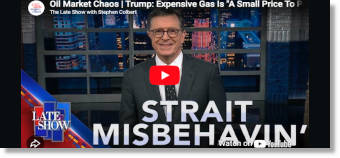 Trump's an Absolute Disaster, Iran Aspires to Attack California & MAGA Coalition is Cracking | Jimmy Kimmel | 03/11/26 | 13:52 Oil Market Chaos | Trump: Expensive Gas Is "A Small Price To Pay" | D.C. Hot Rods | Stephen Colbert | 03/11/26 | 11:59 |