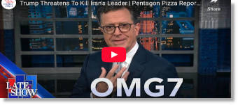 Trump Threatens To Kill Iran's Leader | Pentagon Pizza Report | 10 Years Gone | New MAGA Merch | Stephen Colbert | 06/17/25 | 11:29 Trump Hawks Phones in Newest Grift, Bails from G7 Summit & The Curious Case of MyPillow Mike Lindell | Jimmy Kimmel | 06/17/25 | 19:53 |