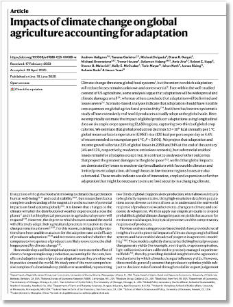 Nature | Impacts of climate change on global agriculture accounting for adaptation | https://www.nature.com/articles/s41586-025-09085-w