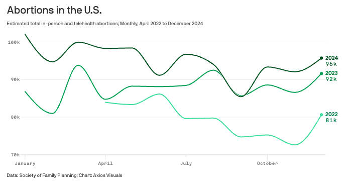 Post-Dobbs abortions continue to increase: Report The number of abortions in the U.S. continued to rise in 2024 - totaling 1.14 million - despite years of bans and restrictions on reproductive care, according to a national report released on Monday. The big picture: Abortions delivered via telehealth have jumped significantly since Roe v. Wade was overturned, with clinicians protected by shield laws. "Drivers of these trends are unclear, especially in the context of multiple changes in the service delivery environment," the #WeCount report from the Society of Family Planning nonprofit said. ... Read more Iran launches missiles at U.S. military bases in Middle East Iran launched multiple missiles against American military bases in the Middle East on Monday in retaliation for the U.S. strike on its nuclear facilities this weekend, according to one Israeli official and one Arab official. At least 10 missiles were launched toward Qatar and at least one missile launched toward Iraq, according to the Israeli official. What they're saying: "The White House and the Department of Defense are aware of, and closely monitoring, potential threats to Al Udeid Air Base in Qatar," a senior White House official told Axios. Iranian media confirmed that an operation against U.S. military assets in the region was underway. "We neither began the war, nor did we ask for it; but we won't let the aggression against the great Iran go unanswered," Iran's President Masoud Pezeshkian wrote on X shortly before the attack. ... Read more