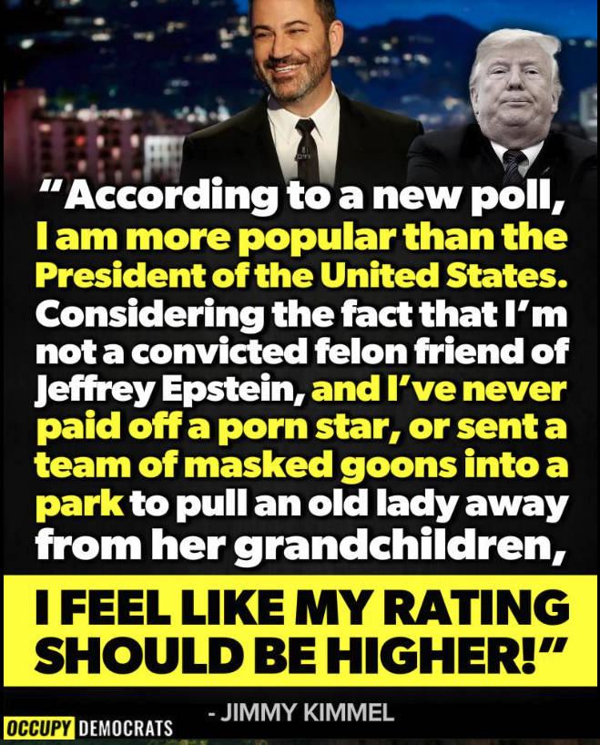 Click to enlargeTrump Can't Stop Blaming and Bragging, Fox News Has a Grip on Him & We See His "Hellhole" Cities | Jimmy Kimmel | 10/15/25 | 13:43