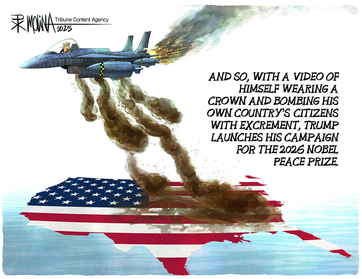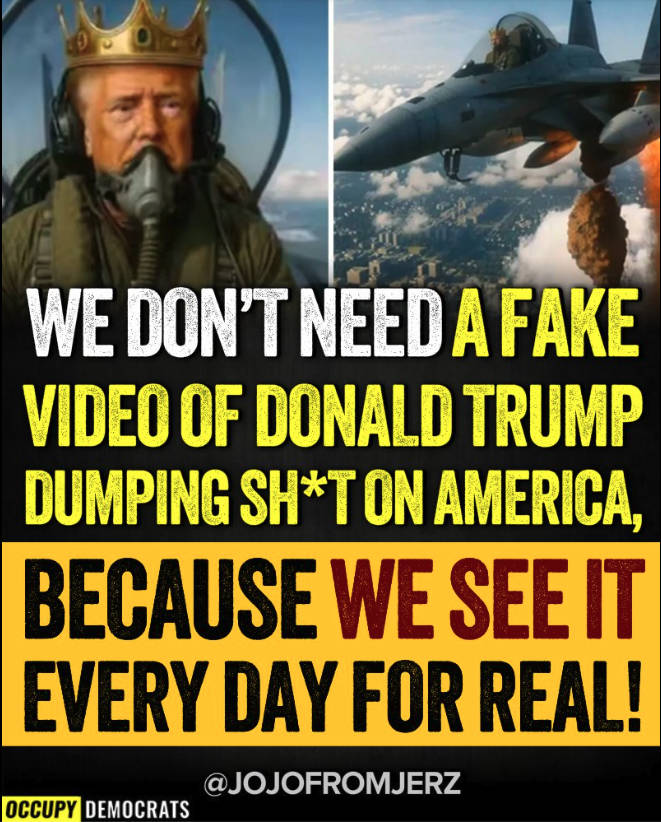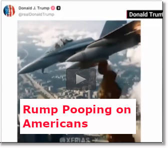 Rump dropping his poop on 'No Kings Day' protesters | https://ca.news.yahoo.com/donald-trump-posts-ai-video-130927814.html |