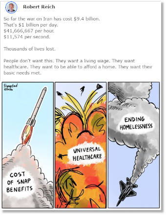 Iran war's energy price shock is likely to spiral economy-wide The Iran conflict has a new economic front: oil topping $100 a barrel, with a near-immediate impact for drivers, travelers and grocery shoppers - while the benefits will flow more slowly to a handful of oil patch states. Why it matters: Americans were already fed up with high prices. The effects of a widening conflict will ripple across the economy, with uncertainty about how high prices will rise and how long the surge will last. Fears about a stagflationary scenario are back, with a fresh inflationary shock coming alongside new signs of labor market weakness. While higher oil prices should mean higher revenue for America's energy extraction industries and limit the damage to GDP, the cost for already-strained households and key industries is likely to be immediate and visible. ... ... ... Read more Iran HUMILIATES Trump after he demands that he be allowed to choose their next leader by announcing that they won't let "Epstein's Gang" decide their nation's "future."
